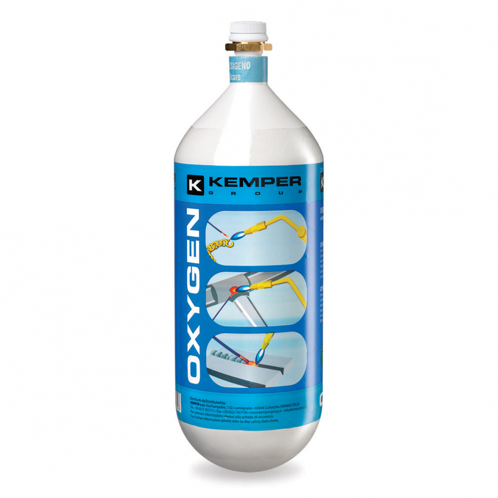 Originálna Kemper oceľová fľaša kyslíka, vhodná predovšetkým pre "miniautogén" či iné technické účely s plným obsahom a opätovne plniteľná !!! Rozmer fľaše: 110 x 340 mm. Rozmer pripojovacieho závitu M24 x 2, pravý. Tlak plynu 200 bar. Obsah: Kyslík - plná 400l. Vyrobené v Európe podľa EN. K pripojeniu na miniautogén použite regulačný ventil KMP510. UPOZORNENIE: Naša spoločnosť neponúka opätovné plnenie tejto fľaše!